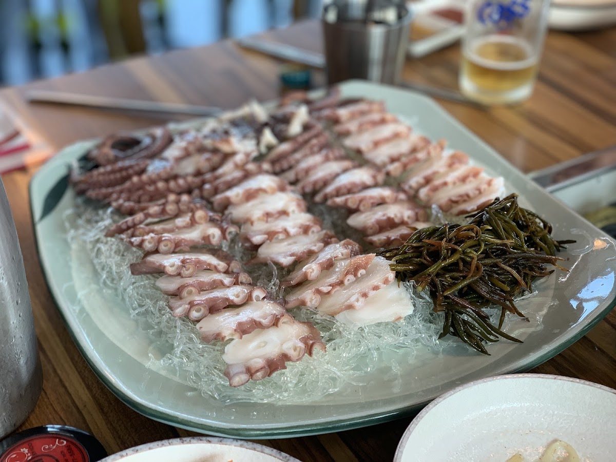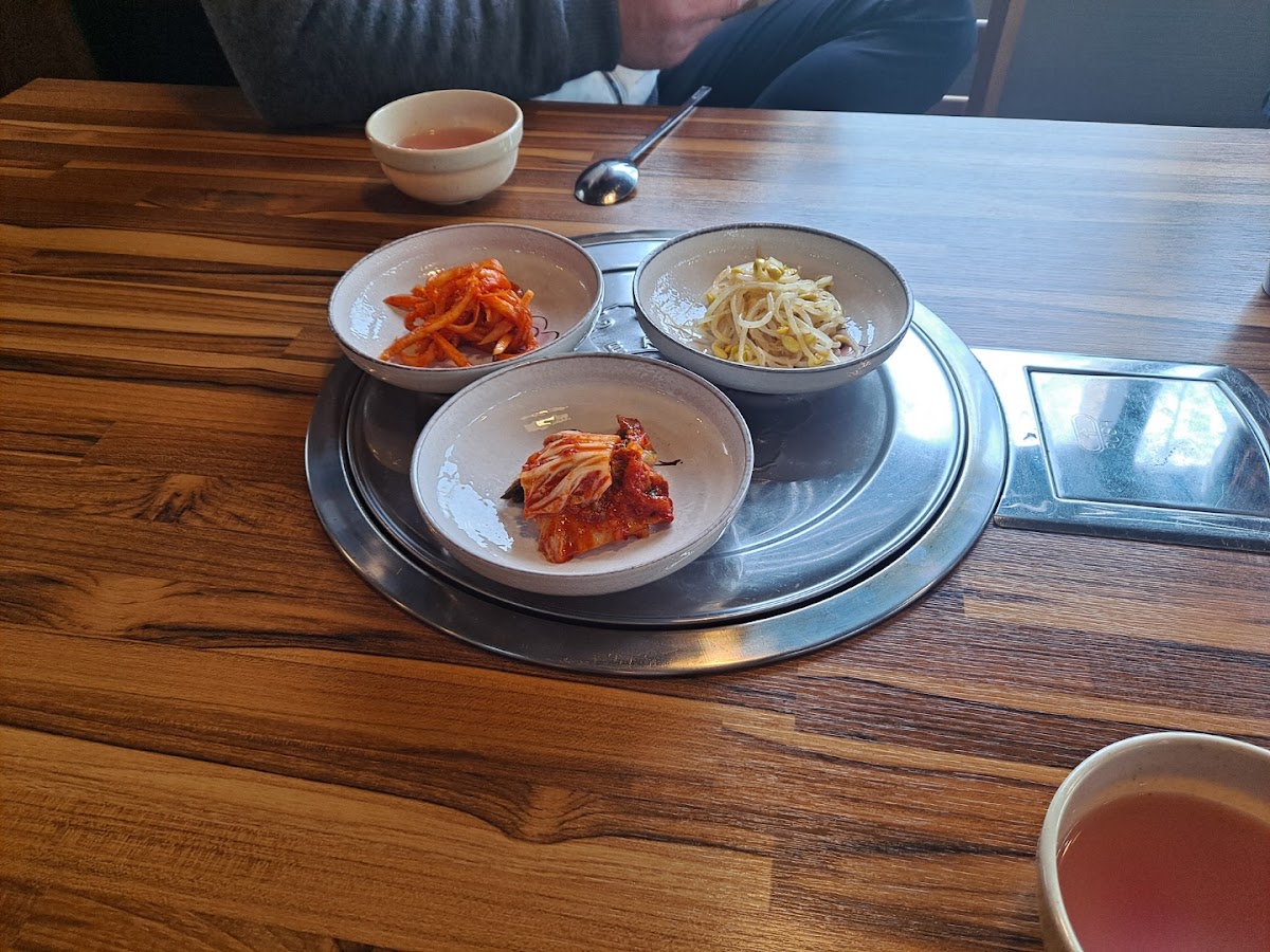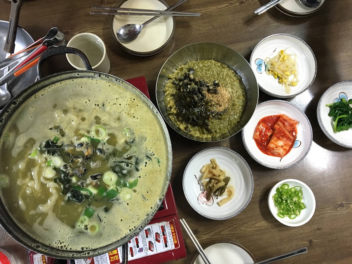 If you're in the area in the off peak season, it's one of the few places open later at night. The last order is 8 p.m. Our Korean was limited, so we just went with the recommendation from the server which was the sea urchin and brown turban shell kalguksu (noodles) and the porridge. Both were really good. The banchan were tasty as well. You can pay with card and split the bill if dining with others.
